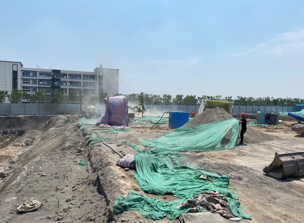 该项目被济宁市污染防治攻坚指挥部办公室下发问责预警函,存在问题:1、部分土方裸露未覆盖,道路积尘严重;2、土石方作业未落实任何抑尘措施,现场扬尘问题突出。