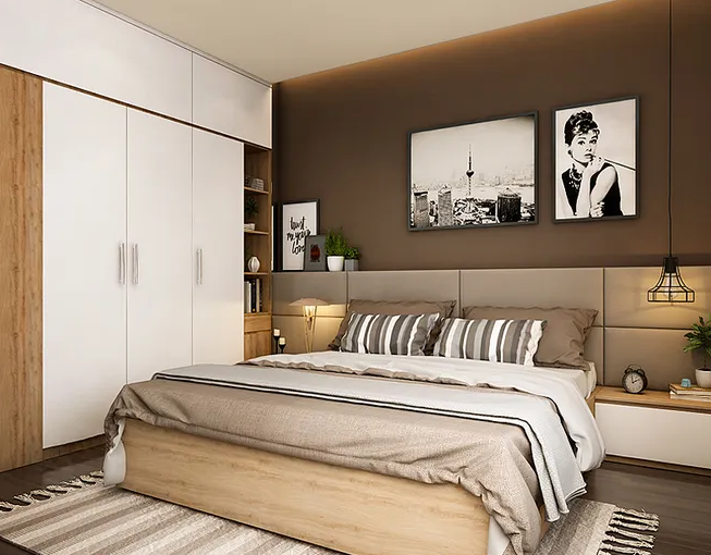 14、考虑到每天开衣柜门拿衣物,因此床与衣柜之间的距离要控制好。如果是推拉式衣柜,距离可再调整。