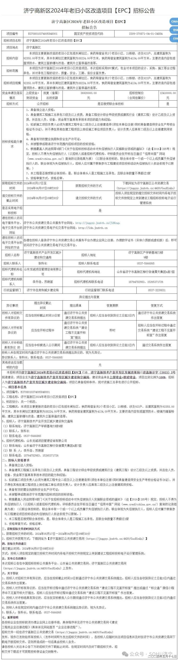工程名称:济宁高新区2024年老旧小区改造项目【EPC】