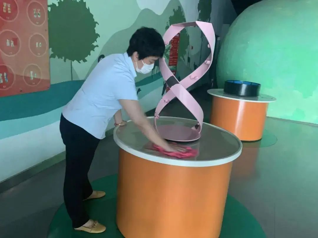 为了让市民朋友们更安全地参观,恢复开放前济宁科技馆对各个展厅、母婴室、卫生间,和所有的电梯轿厢进行了全面的消杀,并设置专门的出入口,采取线上预约,限制参观人流数量。