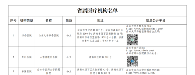 3月1日,山东省卫生健康委员会公布省属医疗机构名单。如下: