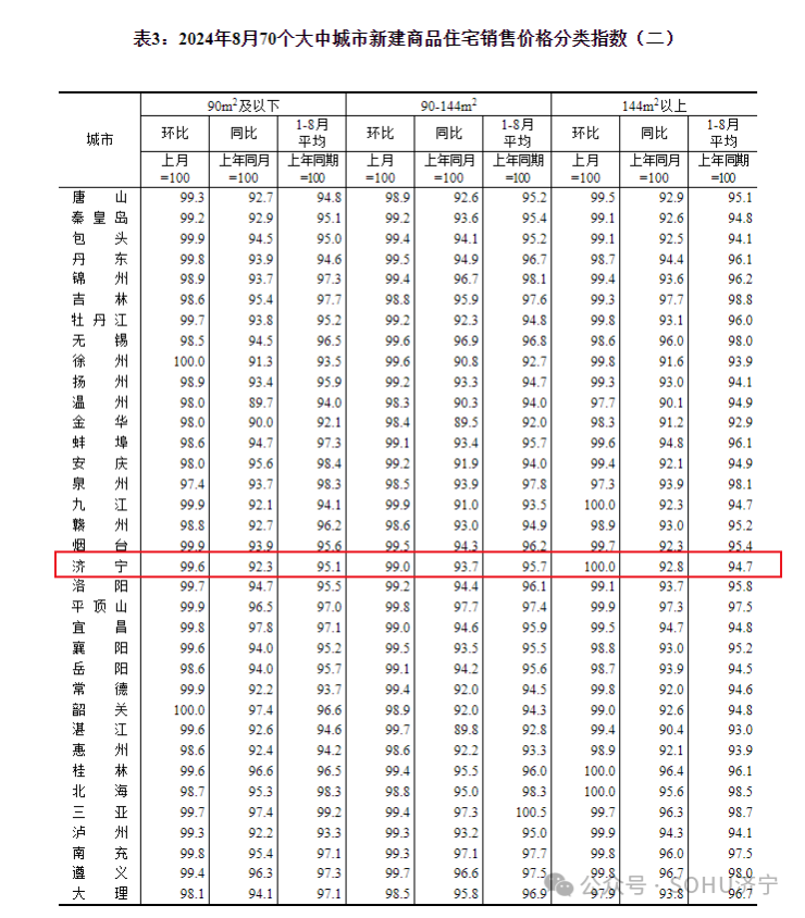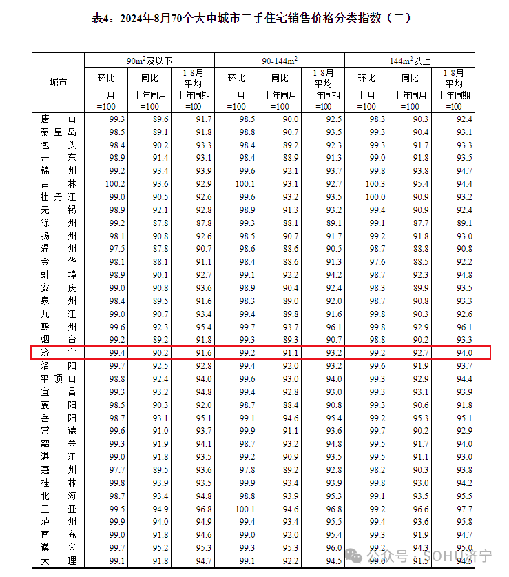 环比下降0.6个百分点!!济宁市2024年8月份房价指数出炉