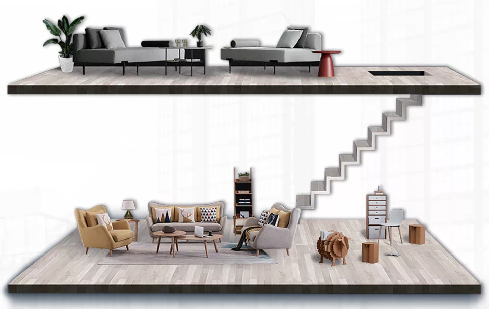 LOFT可以打造为摄影艺术空间。室内摄影是一项极具需求灯光、环境和层次感的艺术,LOFT能够满足这样的要求。约5.09米挑高双层空间,随心所欲,楼梯、花藤、场景都能随心设置。