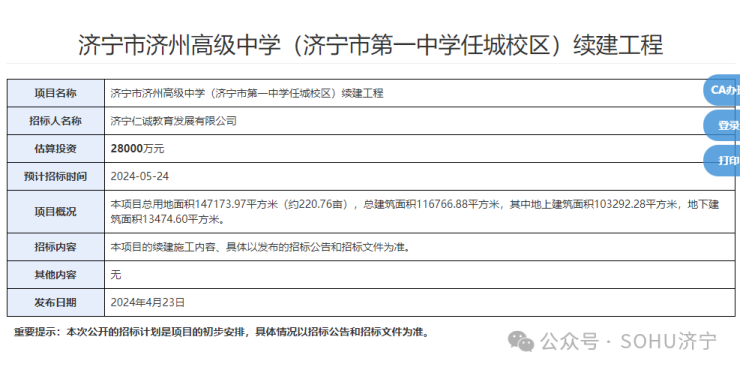 预计投资2.8亿元!济宁一中任城校区续建工程招标