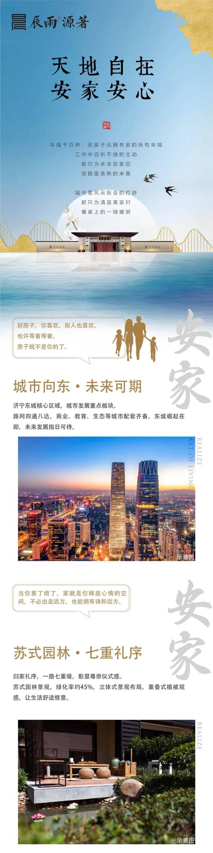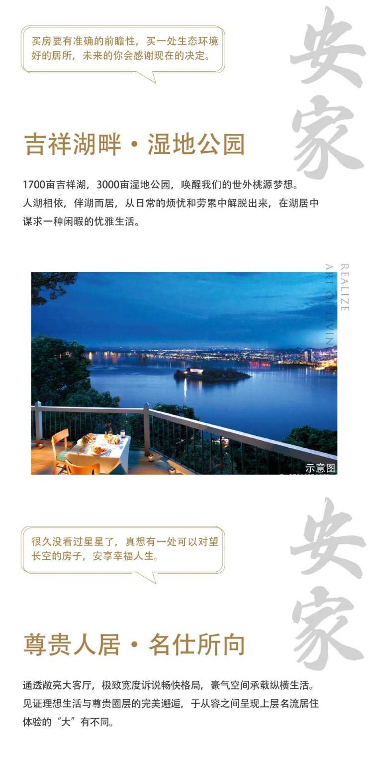 归家礼序,辰雨源著一路七重境,彰显尊崇仪式感。苏式园林景观,绿化率约45%,立体式景观布局,重叠式植被观感,让生活舒适惬意。1700亩吉祥湖,3000亩湿地公园,唤醒我们的世外桃源梦想。人湖相依,伴湖而居,从日常的烦扰和劳累中解脱出来。