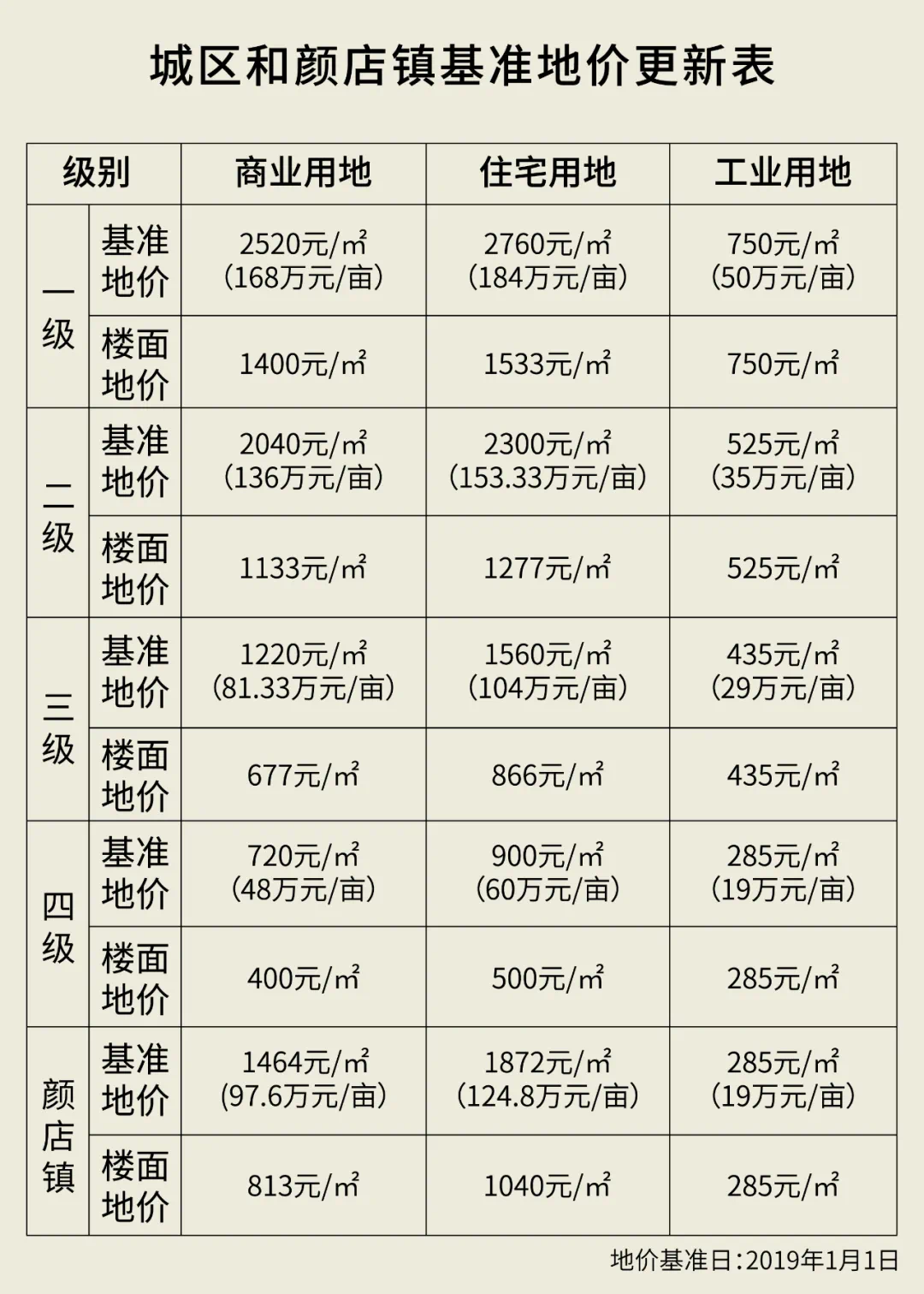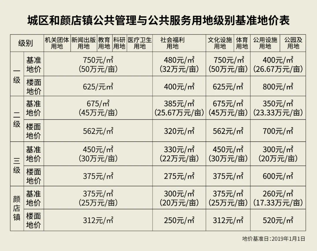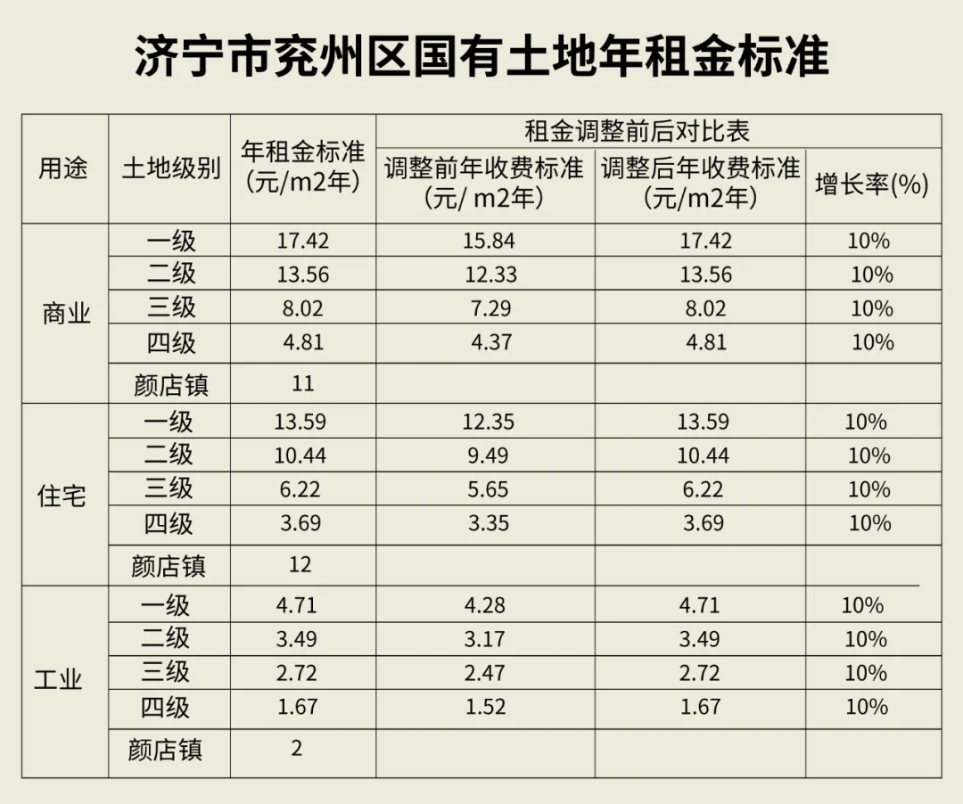 兖州区更新城区和颜店镇土地级别基准地价和国有土地租金标准