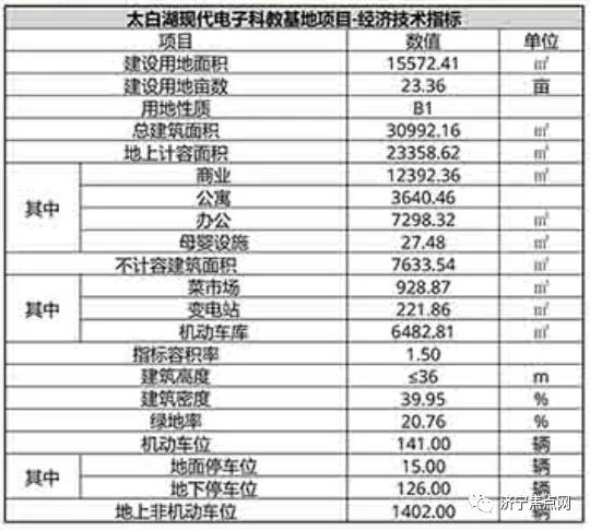 太白湖新区一商业综合体获批!近日,搜狐网·搜狐焦点济宁小编在相关渠道获悉:太白湖现代电子科教基地项目的规划建筑设计方案和工程规划许可获批前公示,具体参数如下。