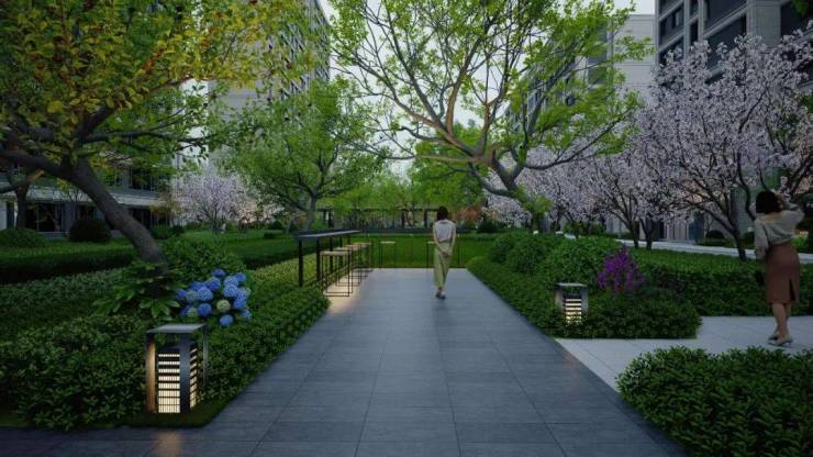 典雅庄重的中轴归家路径,形成花香满径的生活体验;多维立体景观,让园区内的每个观景视角,都被郁郁葱葱的树木和繁花阻隔,呈现出“四季皆有景,天赋生态境”的社区环境;景观会客厅既赋予家人四时的闲雅之趣,也赋予邻里会客时的怡乐之趣;镜面水景倒映白云之上的湛蓝,光、影、景的交融,将这些质朴的美好场景被时间的光所泽润……