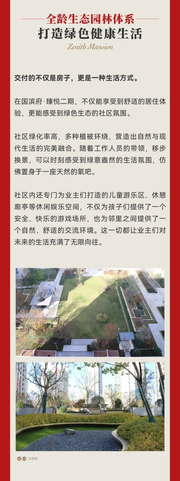 华都国滨府·臻悦社区内还专门为业主们打造的儿童游乐区、休憩廊亭等休闲娱乐空间,不仅为孩子们提供了一个安全、快乐的游戏场所,也为邻里之间提供了一个自然、舒适的交流环境。这一切都让业主们对未来的生活充满了无限向往。