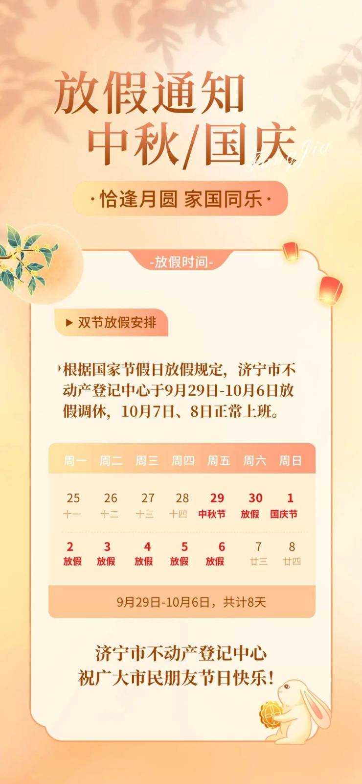 勿跑空!济宁市不动产登记中心发布中秋国庆假期停办业务公告