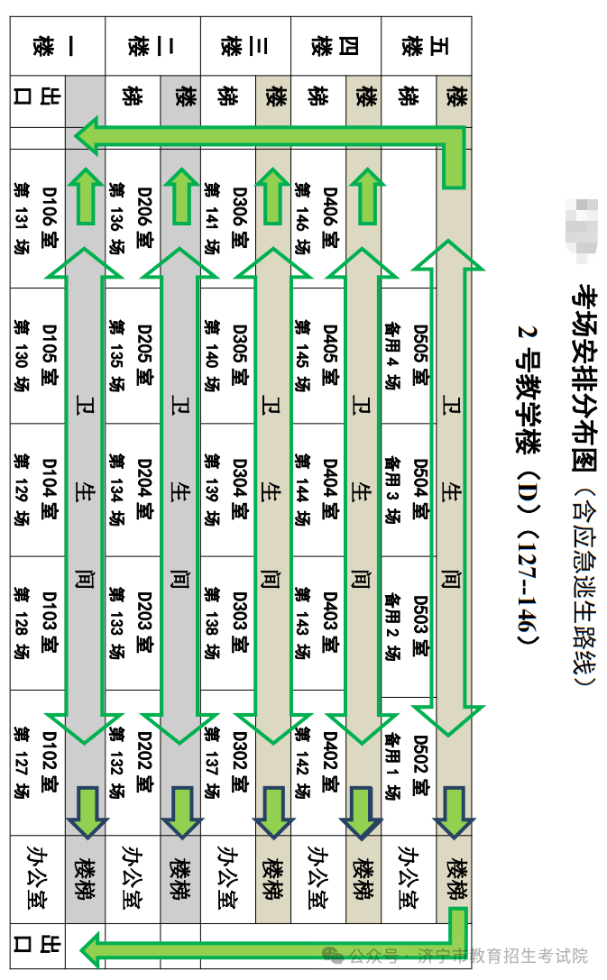 7.考生5月17日下午4:00以后可到济宁一中南门外查看考场安排图,但不可以进入考点。考试期间,所有考生均从考点南门进出。