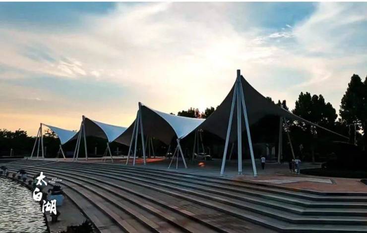 以2022山东省旅游发展大会为契机,太白湖景区全面优化观景平台及周边环境、游船码头、旅游厕所复新、景观绿化、电路基础设施、小品打造等配套旅游服务设施环境改善提升。其中观景平台处的张拉膜为景区标志性建筑物更加凸显。