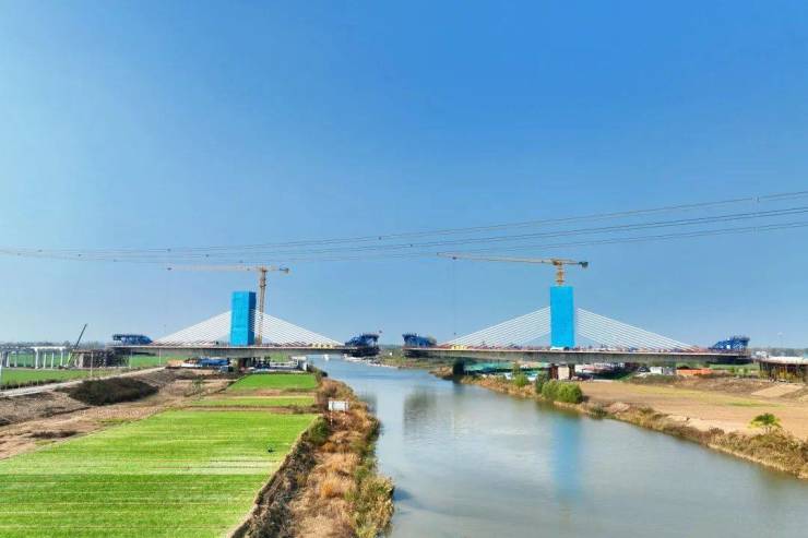 截至目前,项目已完成新万福河特大桥主桥22个节段浇筑,以及金乡西服务区、马庙收费站主体工程,正在进行路基填筑、路面摊铺等工程。“新万福河特大桥这座齐鲁新地标,预计4月底完成中跨合龙,实现全桥整体贯通,将较原工期提前3个月。”项目副经理万俊站在初现飞虹之势的桥面上眺望远方说。