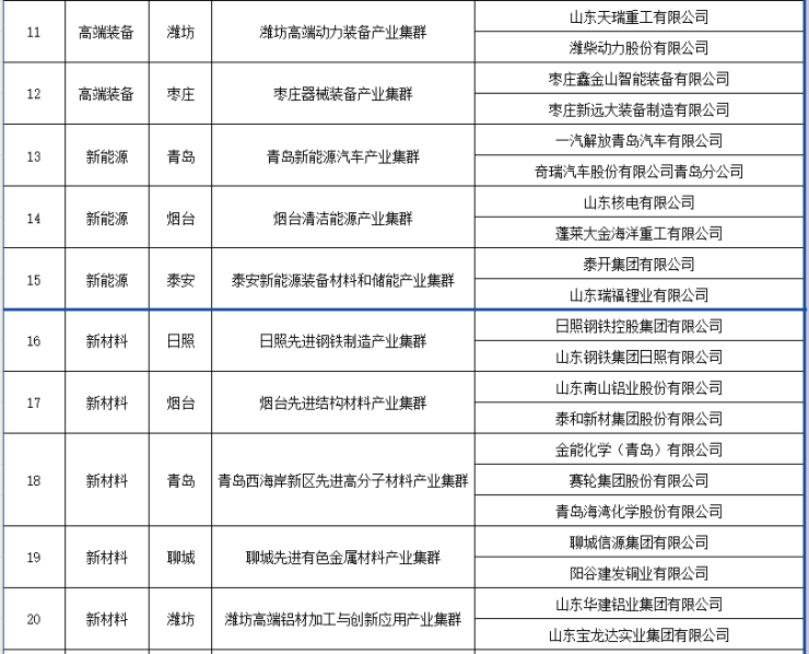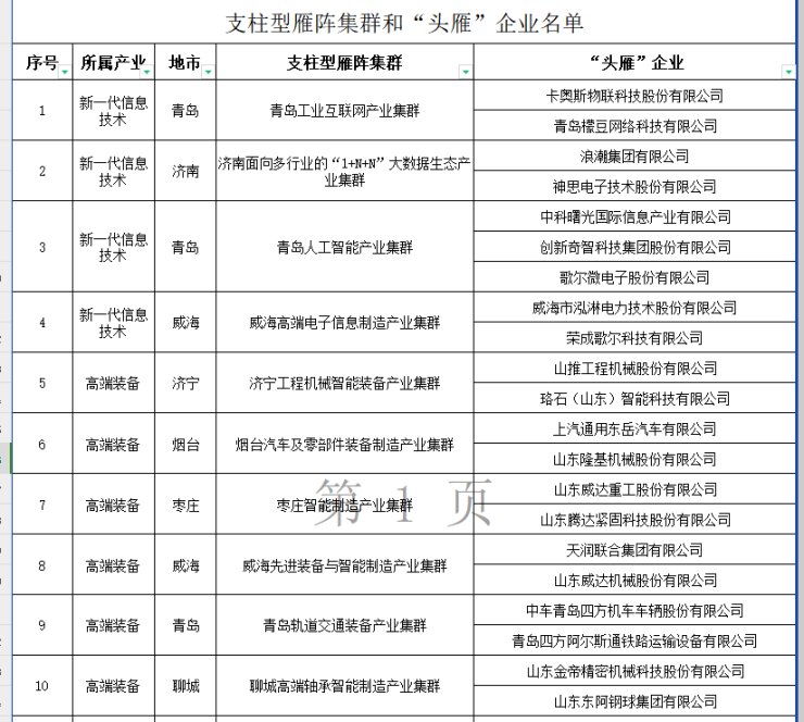 近日,山东省绿色低碳高质量发展先行区建设领导小组办公室发布关于公布支柱型雁阵集群和“头雁”企业名单的通知,确定了45个支柱型雁阵集群和96家“头雁”企业。