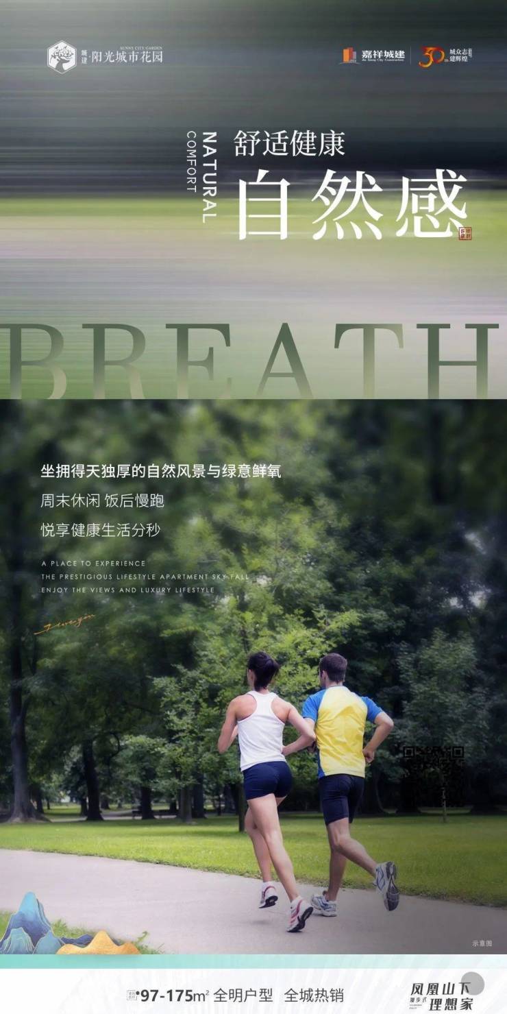 阳光城市花园坐拥得天独厚的自然风景与绿意鲜氧,周末休闲,饭后慢跑,悦享健康生活分秒。建面约97-175㎡全明户型,全城热销。