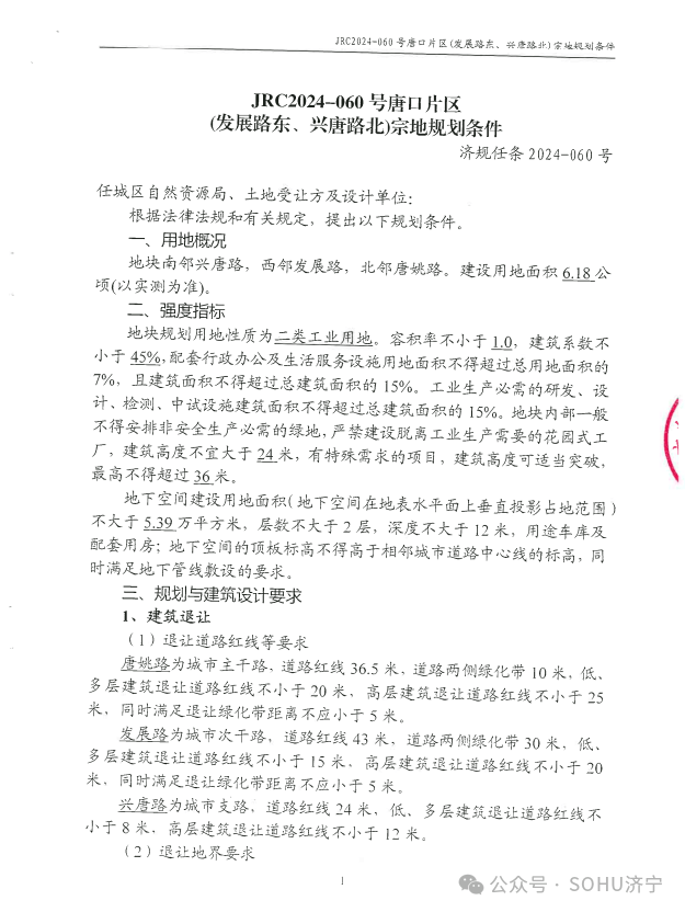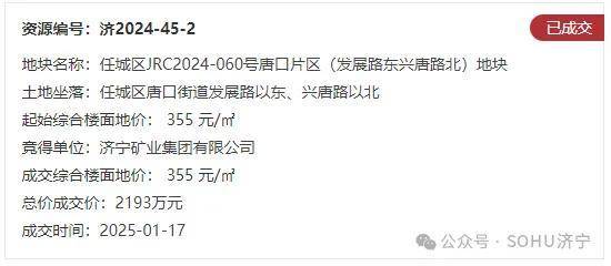 任城区JRC2024-060号唐口片区(发展路东兴唐路北)地块【济宁矿业集团有限公司竞得】