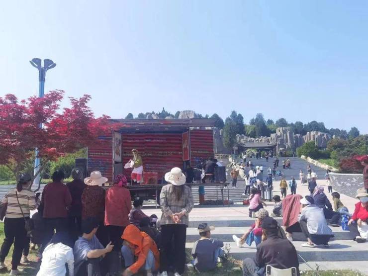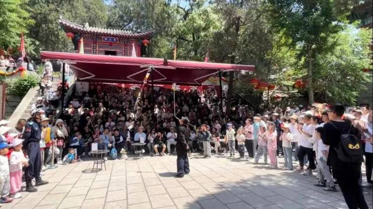 在阳光明媚的时光里,峄山景区安排了超多精彩活动。五一期间景区策划了一场听觉盛宴一一峄山开山鼓。欢快的鼓点,奏响欢快的曲调,欢迎广大来宾、游客的到来。峄山之巅白云宫天宫戏苑内,唢呐、杂技、碗乐、魔术、川剧变脸等表演将轮番登场,精彩不停歇。