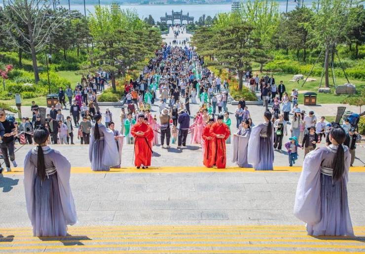 五一假日期间,曲阜三孔景区精心组织开展晨钟开城、暮鼓关城、孔府皮影、祭孔展演等活动。