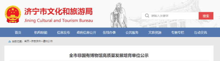 近日,从济宁市文化和旅游局官网了解到,为推动“博物馆之城”建设,进一步促进非国有博物馆高质量发展,根据《博物馆条例》和《关于促进非国有博物馆发展的意见》《关于推动“博物馆之城”建设 促进博物馆事业高质量发展的实施意见》,市文化和旅游局开展了全市非国有博物馆高质量发展培育行动。经各馆自愿参与、县级初审提报、市级专家审核和集中审议,现将拟认定的全市非国有博物馆高质量发展培育单位予以公示(见附件)。