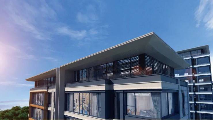 项目采用公建化立面设计,外墙以米白真石漆为主,搭配高定香槟金铝板装饰面,大面积的高反玻璃窗,营造整体线条流畅感与设计感,功能、体验与美学并重;最宽为74米楼间距,超大空间尺度带来了更好的采光和通风;景观园林秉承儒家起源、运河文化历史传承、生态园林四大维度设计理念,营造递进式礼制景观,营造“一轴、一环、五进院、十雅苑”,规划丰富多元的主题生活场景和互动空间。