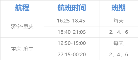 每周10班!7月1日起,大安机场加密济宁至重庆往返航班
