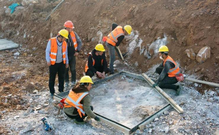 “由于作业面位于山体脚下,土方中有很多岩石,这就需要用挖掘机先把石块破碎。”济宁城投尼山片区项目部工程师张思腾介绍,自2月15日项目开工以来,已完成2.5万立方米的土方施工,占了工程量的大部分。“再有10天左右,基槽土方施工就能完成。”