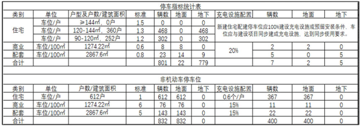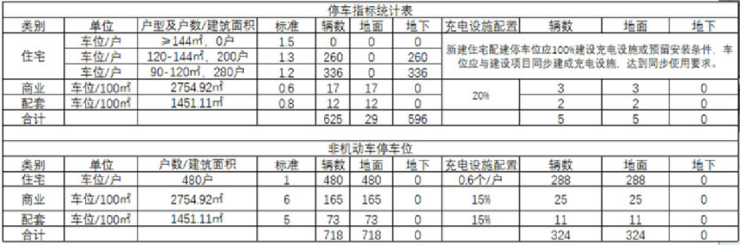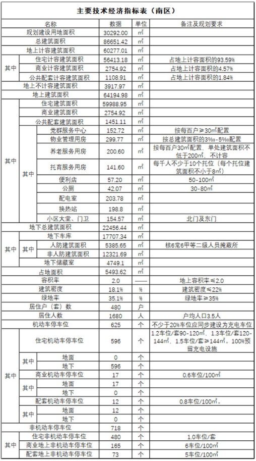 地块一为商住用地,项目建设用地面积30292㎡(约45亩);总建筑面积:86651.42㎡;其中,地上建筑面积为64194.98㎡,计容面积为60277.01㎡(含住宅56413.18㎡、商业2754.92㎡、配套1108.91㎡);地下建筑面积为22456.44㎡;容积率为2.0;建筑密度18.1%;绿地率35.1%;计划总居住户(套)数为480户(套),居住人数约1680人(按3.5人/户预算);建筑类型包括住宅、商业、公服配套设施等;规划机动车停车位625个,非机动车位718个。
