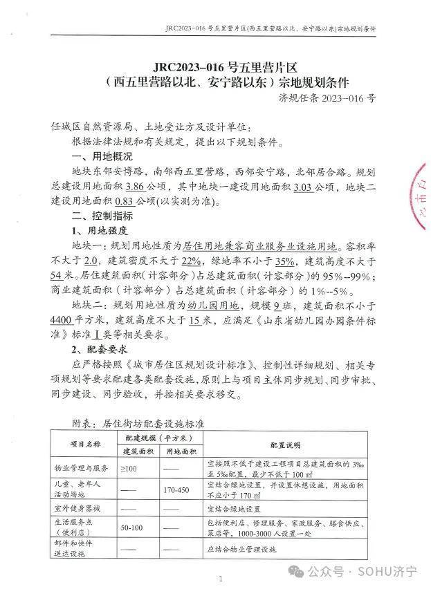 项目位置:济宁市任城区,西五里营路以北、安宁路以东