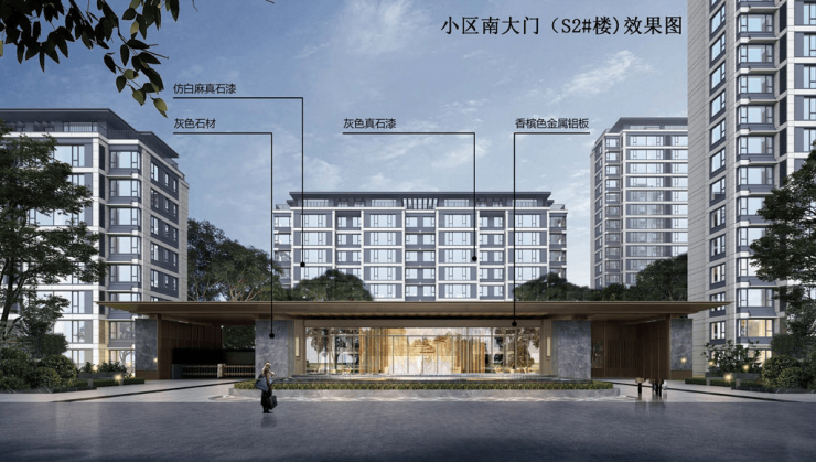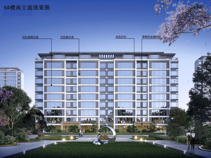 备注:(效果图主要用于表现建筑物外立面主要色彩、材质、造型,景观的整体预设效果,具体施工做法、门窗分幅、建筑细部配件、太阳能板空外造景以经审查通过的施工图设计文件为准