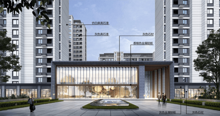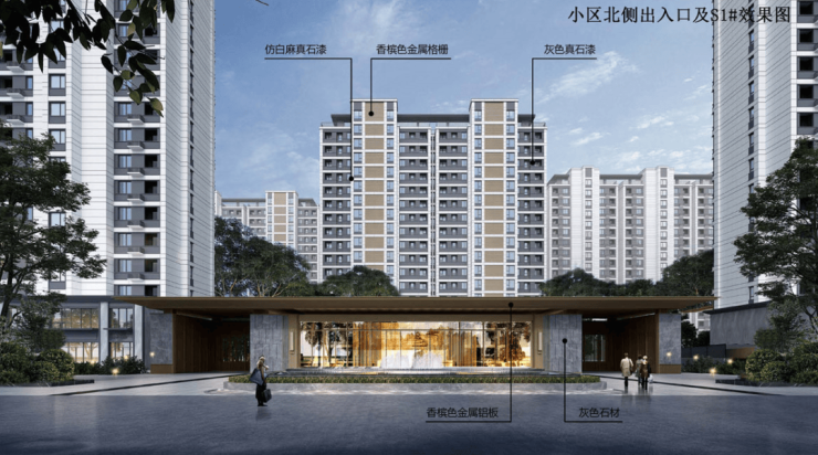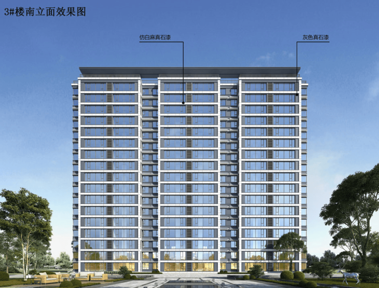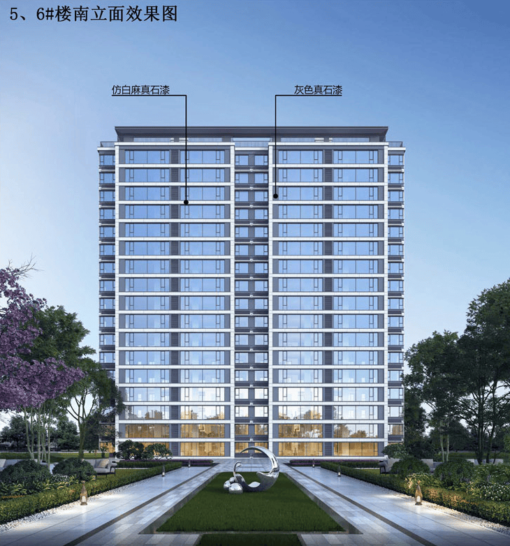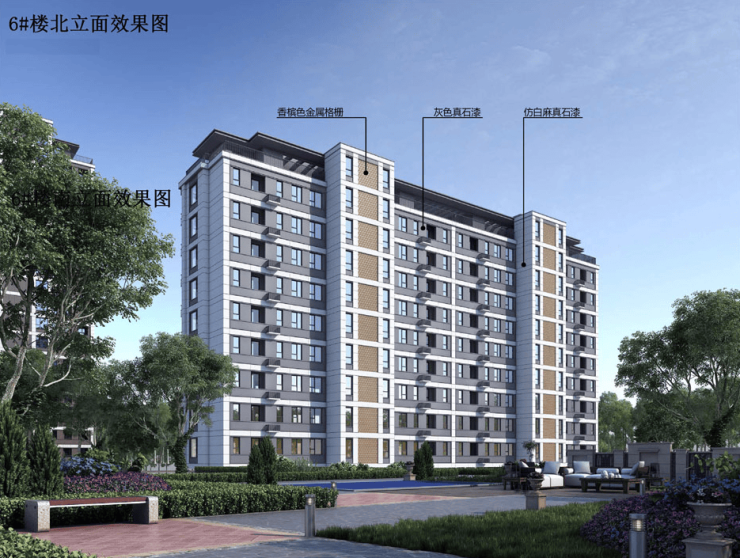 备注:(效果图主要用于表现建筑物外立面主要色彩、材质、造型,景观的整体预设效果,具体施工做法、门窗分幅、建筑细部配件、太阳能板、空外造景以经审查通过的施工图设计文件为准