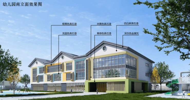 地块二为幼儿园用地,项目建设用地面积8253㎡,为9班制幼儿园,学生人数270人,教师人数27人;总建筑面积4455.47㎡;容积率0.5;建筑密度18%;绿地率35.1%。