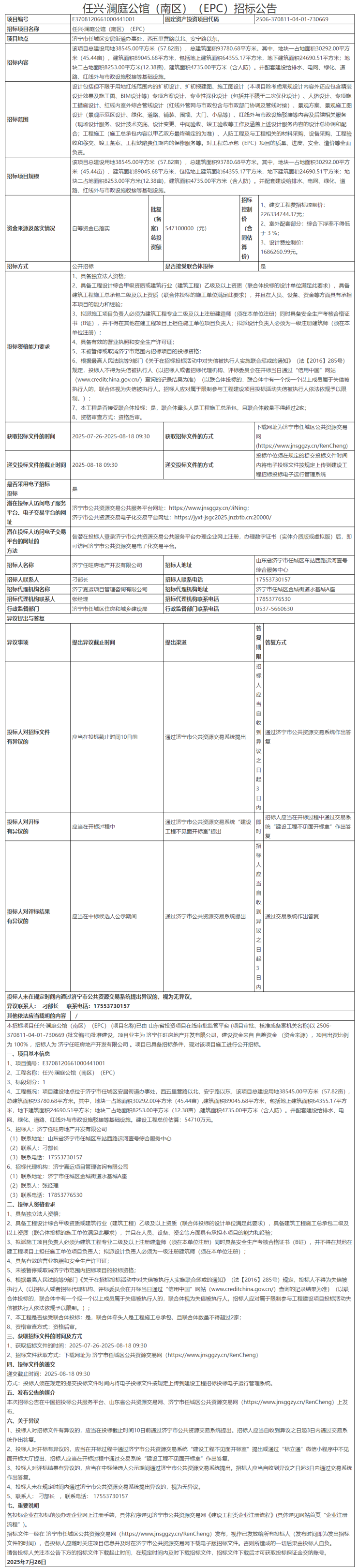2025年7月26日,济宁市公共资源交易公共服务平台发布相关招标公告。