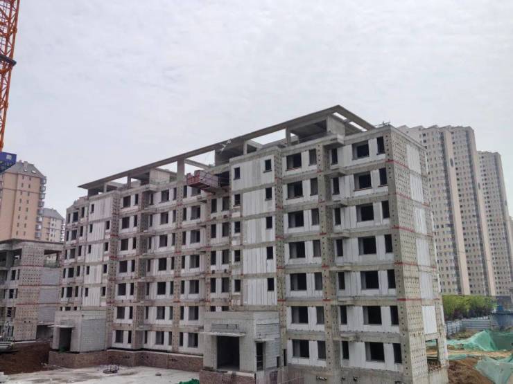 2#楼ALC板安装完成,墙体砌筑至11层。