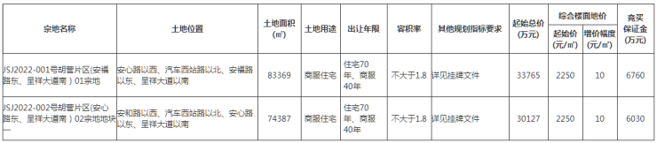 2. JSJ2022-002号胡营片区(安心路东、呈祥大道南)02宗地地块一:2022年12月30日09时00分至2023年01月09日09时10分;