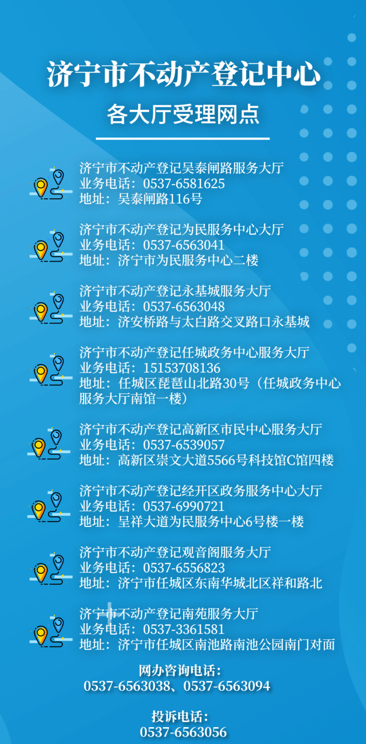 地址:济宁市为民服务中心服务大厅二楼不动产登记窗口