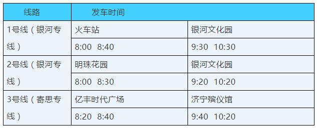 1.专线开通期间,我公司将根据客流情况动态调整发车时间和发车频次,市民可关注“济宁公交”微信公众号,通过留言提出合理建议,便于为市民提供更好的公交出行服务。