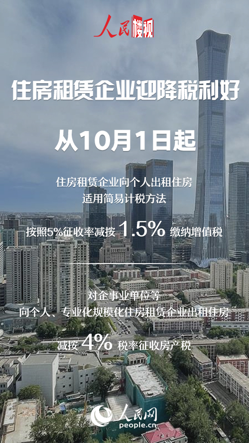 会议确定,人口净流入的大城市等,可利用集体经营性建设用地、企事业单位自有土地建设保障性租赁住房,允许将闲置和低效利用的商业办公用房、厂房等改建为保障性租赁住房。从10月1日起,住房租赁企业向个人出租住房适用简易计税方法,按照5%征收率减按1.5%缴纳增值税;对企事业单位等向个人、专业化规模化住房租赁企业出租住房,减按4%税率征收房产税。