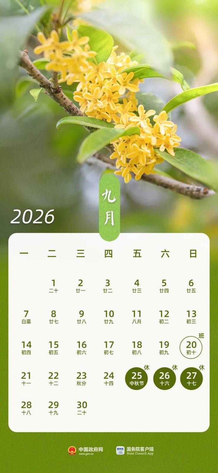 2026年节日放假调休日期