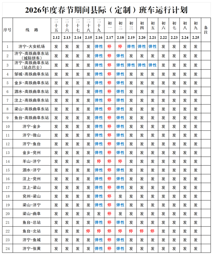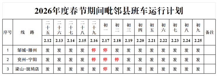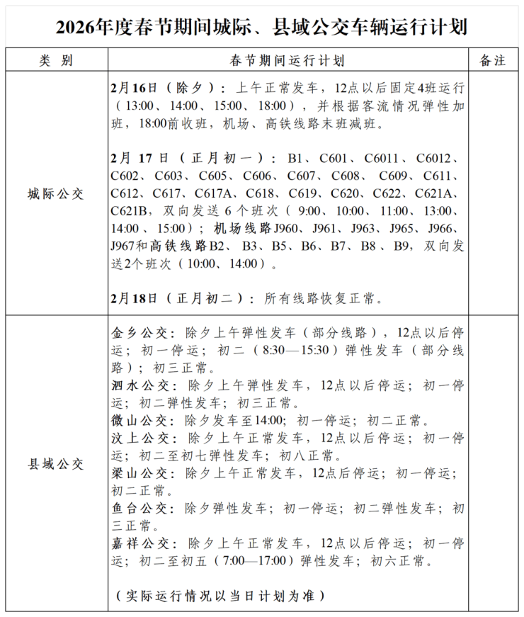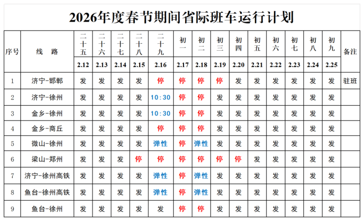 来了!济宁交运各汽车站2026年春节期间客车运行计划出炉