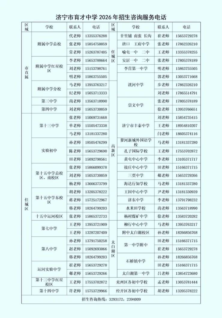 @考生家长:中考招生咨询热线公布!包含济宁这些中学