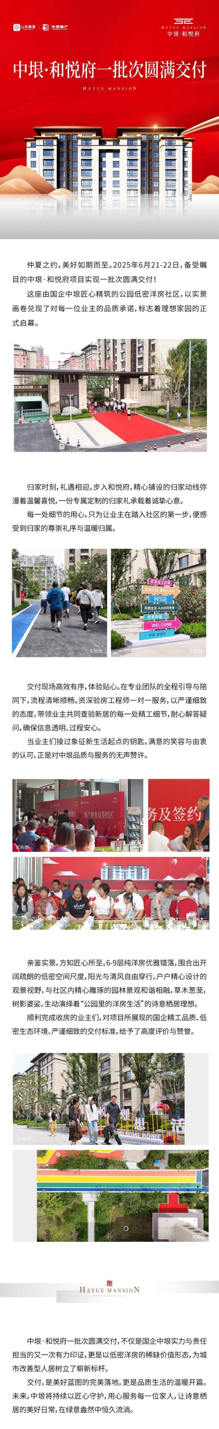 中垠·和悦府一批次圆满交付,不仅是国企中垠实力与责任担当的又一次有力印证,更是以低密洋房的稀缺价值形态,为城市改善型人居树立了崭新标杆。交付,是美好蓝图的完美落地,更是品质生活的温暖开篇。未来,中垠将持续以匠心守护,用心服务每一位家人,让诗