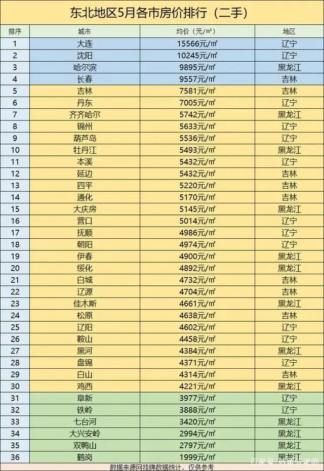 截止2021年5月末,东北共有6个城市(地区)的均价不到4000元,去年一度成为网红城市的鹤岗以及双鸭山、大兴安岭地区的均价更是不到3000元。这个价格即便在国内各大城市的统计也是处于较低的价格。