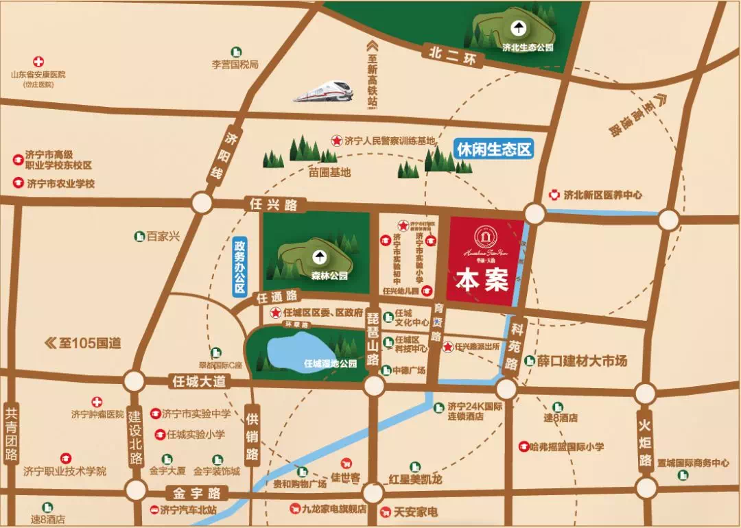 区域内,森林公园、任城湿地公园、济北生态公园,三大公园环绕