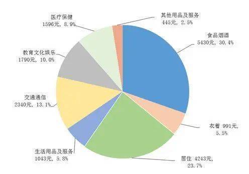 前三季度,全国居民人均食品烟酒消费支出5430元,增长5.6%,占人均消费支出的比重为30.4%;人均衣着消费支出991元,下降1.1%,占人均消费支出的比重为5.5%;人均居住消费支出4243元,增长5.3%,占人均消费支出的比重为23.7%;人均生活用品及服务消费支出1043元,增长2.2%,占人均消费支出的比重为5.8%;人均交通通信消费支出2340元,增长4.6%,占人均消费支出的比重为13.1%;人均教育文化娱乐消费支出1790元,下降4.2%,占人均消费支出的比重为10.0%;人均医疗保健消费支出1596元,增长2.5%,占人均消费支出的比重为8.9%;人均其他用品及服务消费支出445元,增长7.2%,占人均消费支出的比重为2.5%。