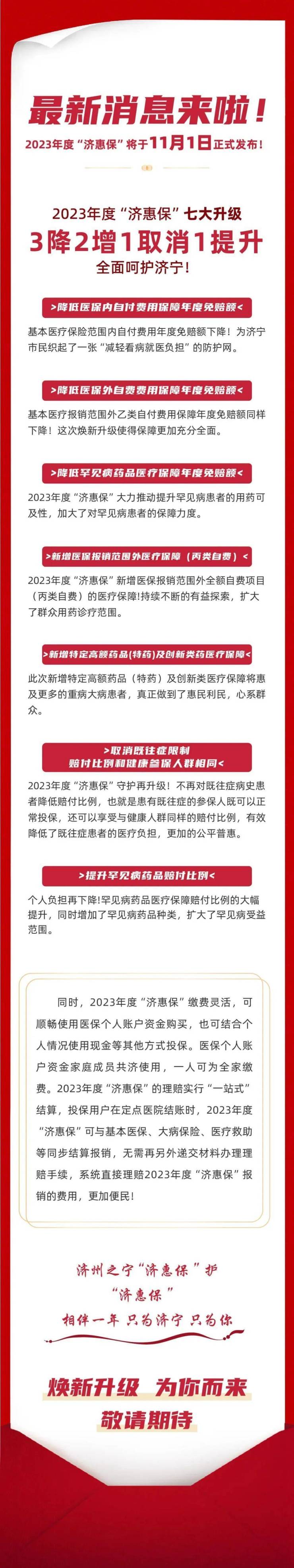 不要忘记, 2023年度全新升级的“济惠保”将在 11月1号正式上线哦!