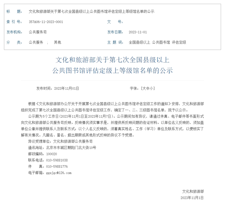 11月1日,文化和旅游部印发《文化和旅游部关于第七次全国县级以上公共图书馆评估定级上等级馆名单的公示》,济宁这些图书馆榜上有名。具体如下:
