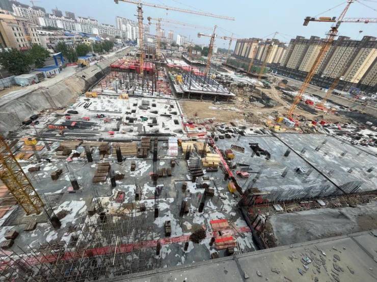 截至停工前,飞跃时代广场2期 滨湖·孝贤里 除4#楼暂未施工外,1-3#楼筏板钢筋施工大部分已经完成,5-9#楼已进入地下室顶板施工、地下室墙柱施工阶段。 各楼栋实际工程100%按照工程计划有序推进。 待工程复工后,共鉴美好家园。