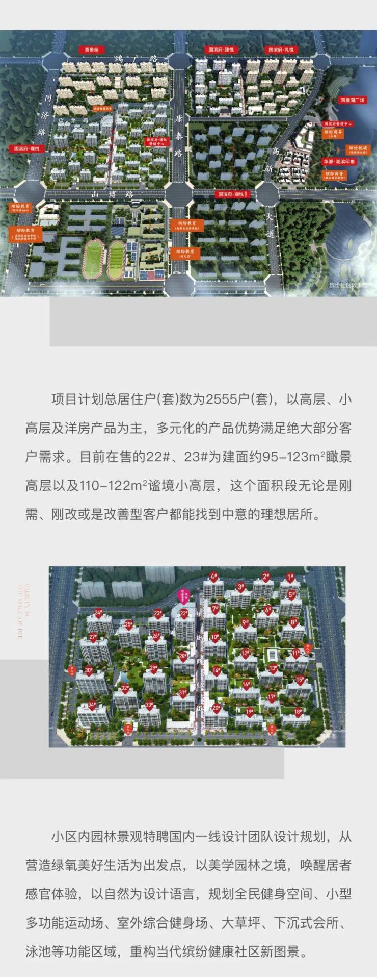 华都国滨府·璞悦小区内园林景观特聘国内一线设计团队设计规划,从营造绿氧美好生活为出发点,以美学园林之境,唤醒居者感官体验,以自然为设计语言,规划全民健身空间、小型多功能运动场、室外综合健身场、大草坪、下沉式会所、泳池等功能区域,重构当代缤纷