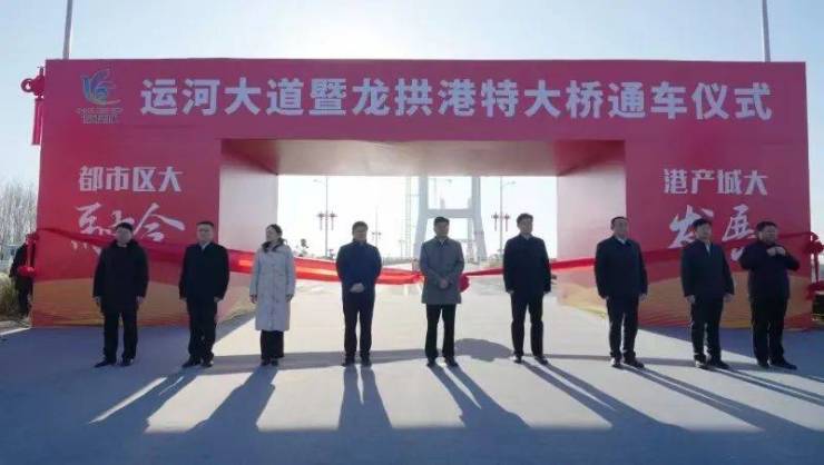 仪式上,张令华介绍项目情况并代表区委区政府对在工程建设中付出辛勤汗水的各参建单位和广大一线工人表示衷心感谢。他说,运河大道是运河新城“五纵八横”主干路网之一,全长28公里,南连鱼台,北接梁山,龙拱港特大桥是运河大道南北通行的关键节点桥梁。大桥建成通车,实现了运河大道28公里全线贯通,将加速推进港产城大发展、都市区大融合,进一步提升济宁区域竞争力、辐射带动力。运河新城作为任城区“西跨”的主战场,要坚持“产城融合、宜居宜业”发展定位,全速推进运河新城建设,着力建设文化创意示范区、信息产业带动区、新兴产业集聚区,打造产业发达、活力充沛、水城交融、生态宜居的现代典范城区,为济宁“都市区一体化融合发展”作出更多贡献。