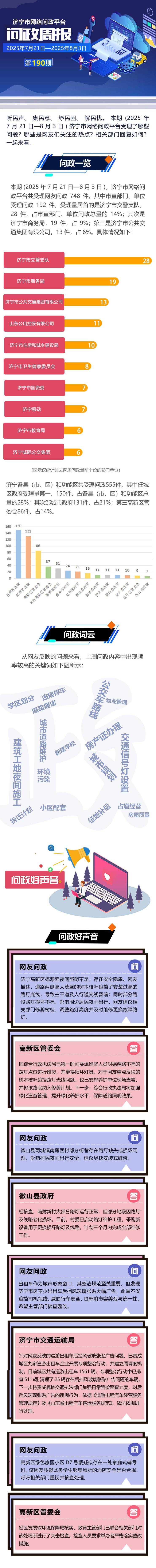 听民声、集民意、纾民困、解民忧。本期(2025年7月21日—8月3日)济宁市网络问政平台受理了哪些问题?哪些是网友们关注的热点?相关部门回复如何?一起来看。